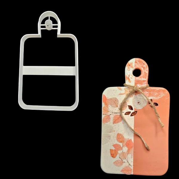 CORTANTE GRANDE IDEAL PARA ARCILLA, PORCELANA FRÍA, REPOSTERÍA, ETC. CON LA FORMA DE TABLA DE PICADAS.